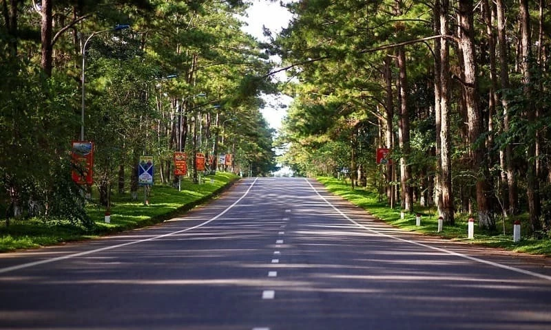 - Trên đường đi, đoàn dừng chân check-in Đường thông Măng Đen: nơi được mệnh danh là “Đà Lạt thứ 2” của Việt Nam. Điểm đến này rất đáng để đi bởi không khí rất dễ chịu mát mẻ quanh năm, điểm tô vào đó là nét đẹp còn nguyên sơ của cao nguyên đại ngàn, của rừng thông đầy quyến rũ và nơi xứ sở của hồ của thác, Măng Đen có đến 7 hồ và 3 thác đẹp tuyệt vời.